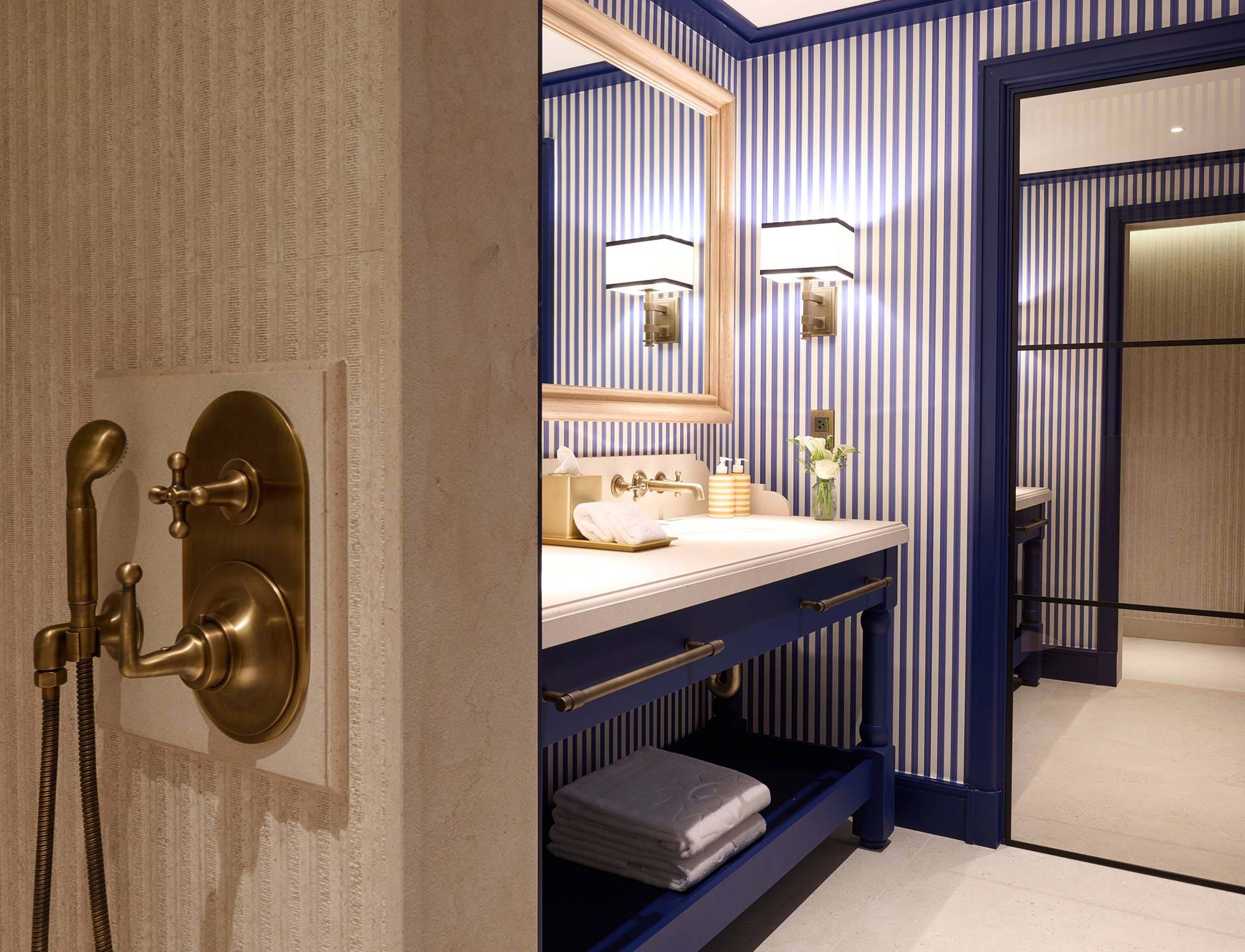 - Luxuriöses Badezimmer mit Marmor-Waschtischen und beheizten Handtuchhaltern