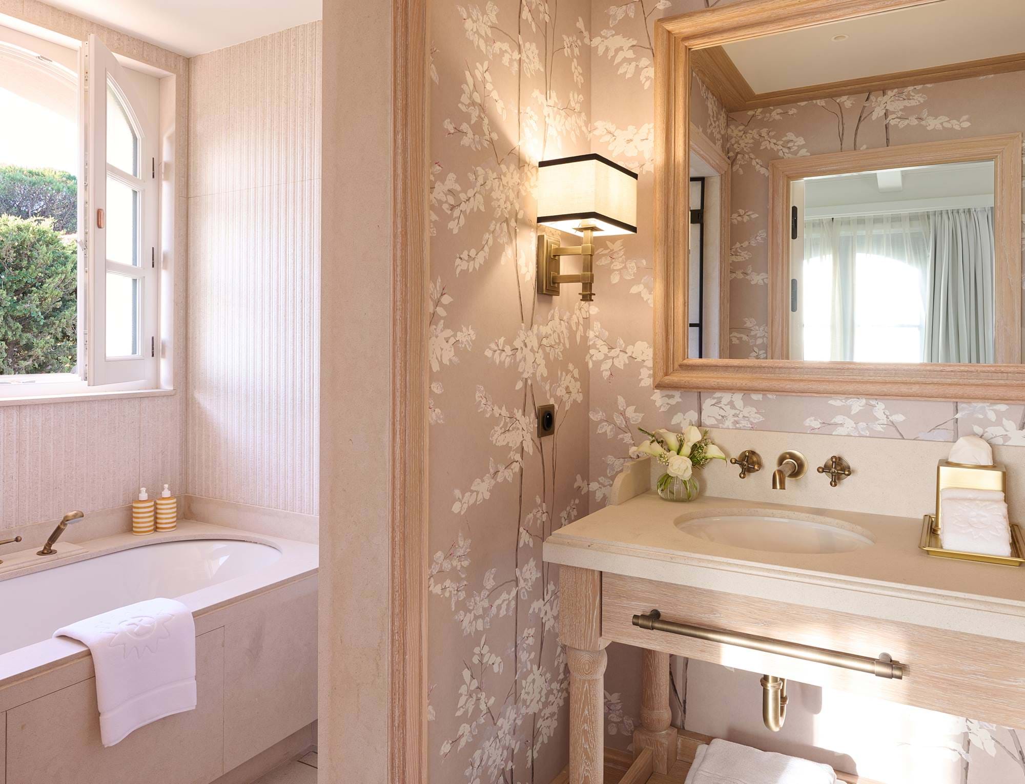 - Luxuriöses Badezimmer mit Marmorwaschtischen und beheizten Handtuchhaltern