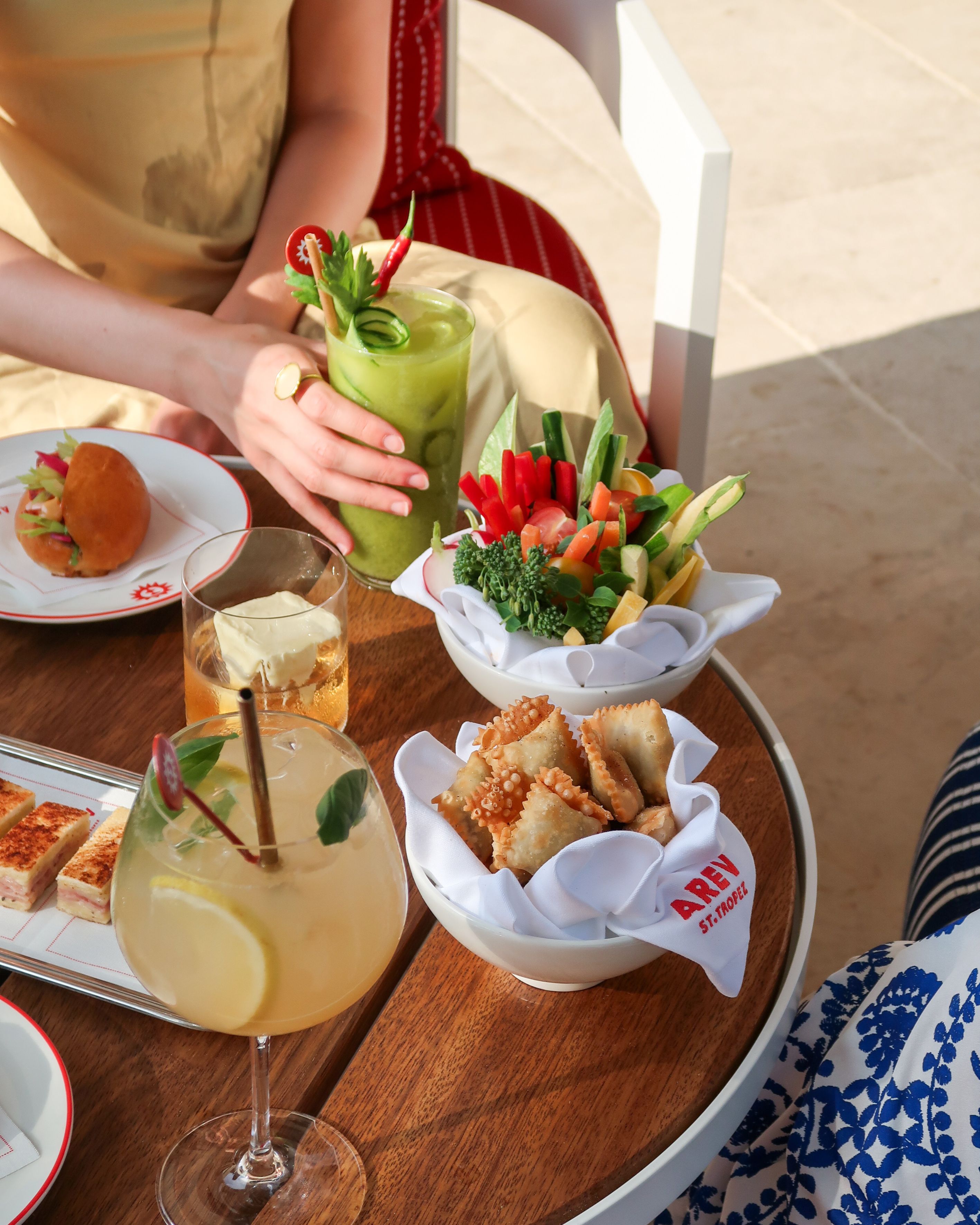 À AREV St. Tropez, l’apéritivo — ce moment suspendu où l’après-midi glisse vers la soirée — prend vie sur la terrasse.